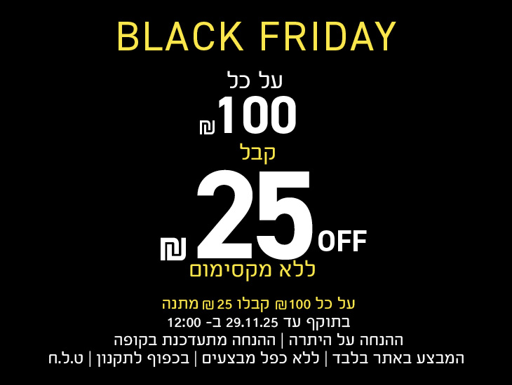 BLACK FRIDAY | אקסטרה 10% הנחה על כל האתר בנוסף למבצעים הקיימים